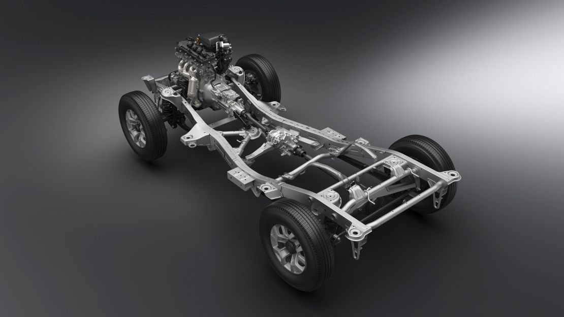 Четвертое поколение Suzuki Jimny получило четыре главных атрибута серьезного внедорожника. Это лонжеронная рама лестничного типа, впечатляющие углы въезда, съезда и рампы, прочную зависимую подвеску, а также подключаемый полный привод системы AllGRIPPRO. Особенностью данной системы является наличие раздаточной коробки с возможностью подключения пониженной передачи, в разы увеличивающей крутящий момент двигателя.